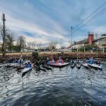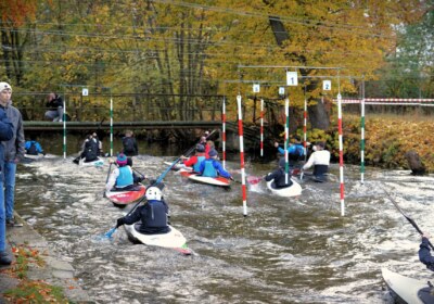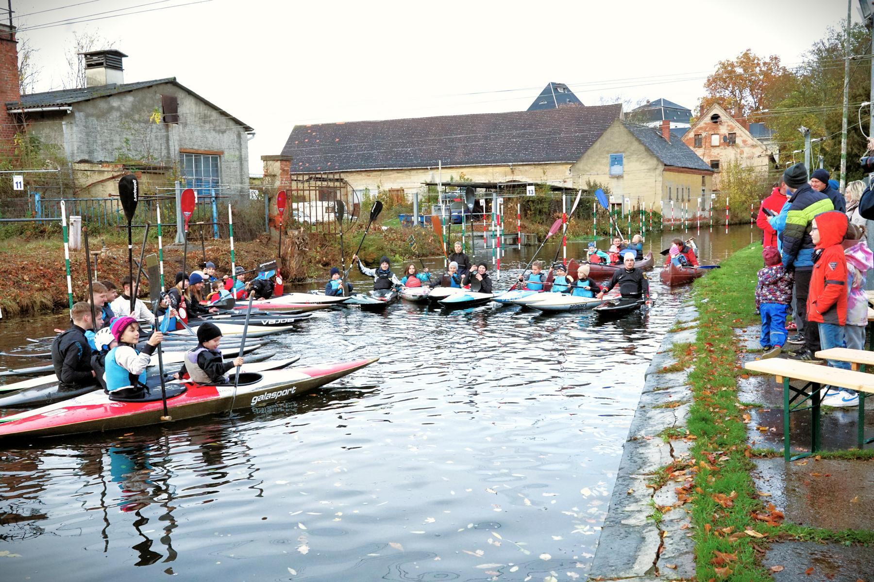 Es ist angerichtet und die Boothungrigen können sich aufmachen zum gemeinsamen Abpaddeln. Wo geht’s hin? Erstmal in den Halbkreis für die Fotografen, danach den Mühlgraben hinauf bis zur Brücke und zurück zum Aufwärmen bei Gegrilltem, Glühwein und Lagerfeuer.