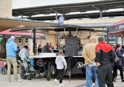 Nach einem exklusiven Rundgang mit der Minsterin, dem Prösterchen nach dem formalen Durchschneiden des Bandes mit der Eröffnungserklärung begann der Run der Zeitzerinnen und Zeitzer. Sie wollten nun auch sehen, was aus der ehemaligen Mitropa-Gaststätte und den anderen Räumen geworden ist. Es zeigte sich den ganzen Tag, wie sehr verbunden sich die Bürgerschaft mit ihrem Bahnhof fühlt. Indes die anderen BesucherInnen sich mit den zahlreichen Angeboten von der Bratwurst mit Bier, Kaffee mit Kuchen, Show oder jeder Menge Information zu beschäftigen.