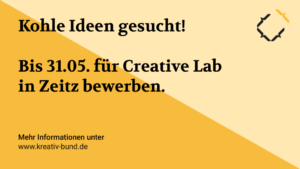 Bis zum 31. Mai 2021 können sich bundesweit Innovator*innen für das Creative Lab des Kompetenzzentrums Kultur- und Kreativwirtschaft des Bundes bewerben. Gesucht werden Ideen, Konzepte oder Geschäftsmodelle, die neue Perspektiven für den Strukturwandel schaffen.