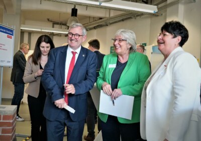 Bei WORKS wissen sie genau, was Jugendlichen wie angeboten werden muss, um sie zu erreichen, zu begeistern. Die bisherigen Angebote für Berufswahlorientierung nahmen im letzten mehr als 500 SchülerInnen der Klassen 7 und 8 in Anspruch, wusste Christiane Brandenburg zu berichten. Die Idee für die Halle des Handwerks kam offensichtlich bei den lokalen Betrieben so gut an, dass sie bei der Ausgestaltung der Stationen tatkräftig mithalfen. Wir sehen eine Station, die das Druckhaus Blochwitz herrichtete, gleich daneben das Digitaliseirungszentrum, im anderen Raum die Innungsbetriebe der Installateure. Sie alle sehen den Bedarf und wissen, worauf es ankommt. Neben den Fördermitteln aus dem Modellvorhaben „Unternehmen Revier“ sind Mitwirkung und Kooperation mit dem lokalen Handwerk eine wertvolle Unterstützung. Das würdigte ausdrücklich Staatssekratär Dr. Jürgen Ude in seiner Ansprache.