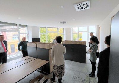 Im Zeitzer Coworking Space hat sich Entscheidendes getan. Sämtliche Verkabelungen sind komplett, Fußböden verlegt, Zwischenwände nahezu fertig, Mobiliar wird gerückt.