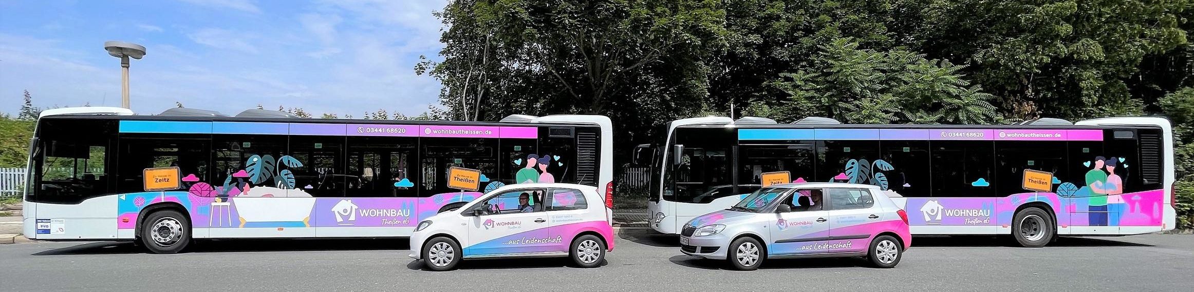 Der Wohnungsanbieter aus der Zeitzer Ortschaft Theißen hat erst jüngst sein Erscheinungsbild beträchtlich aufgefrischt. Zierte es bisher bereits die Dienstfahrzeuge, ist das hippe Corporate Design jetzt auch großflächig mobil unterwegs – auf zwei Bussen der PVG Burgenlandkreis. Heute (13.7.) hieß es einsteigen und wohnfühlen. Die Busse wurden von der VerkehrsMedien GmbH übergeben.