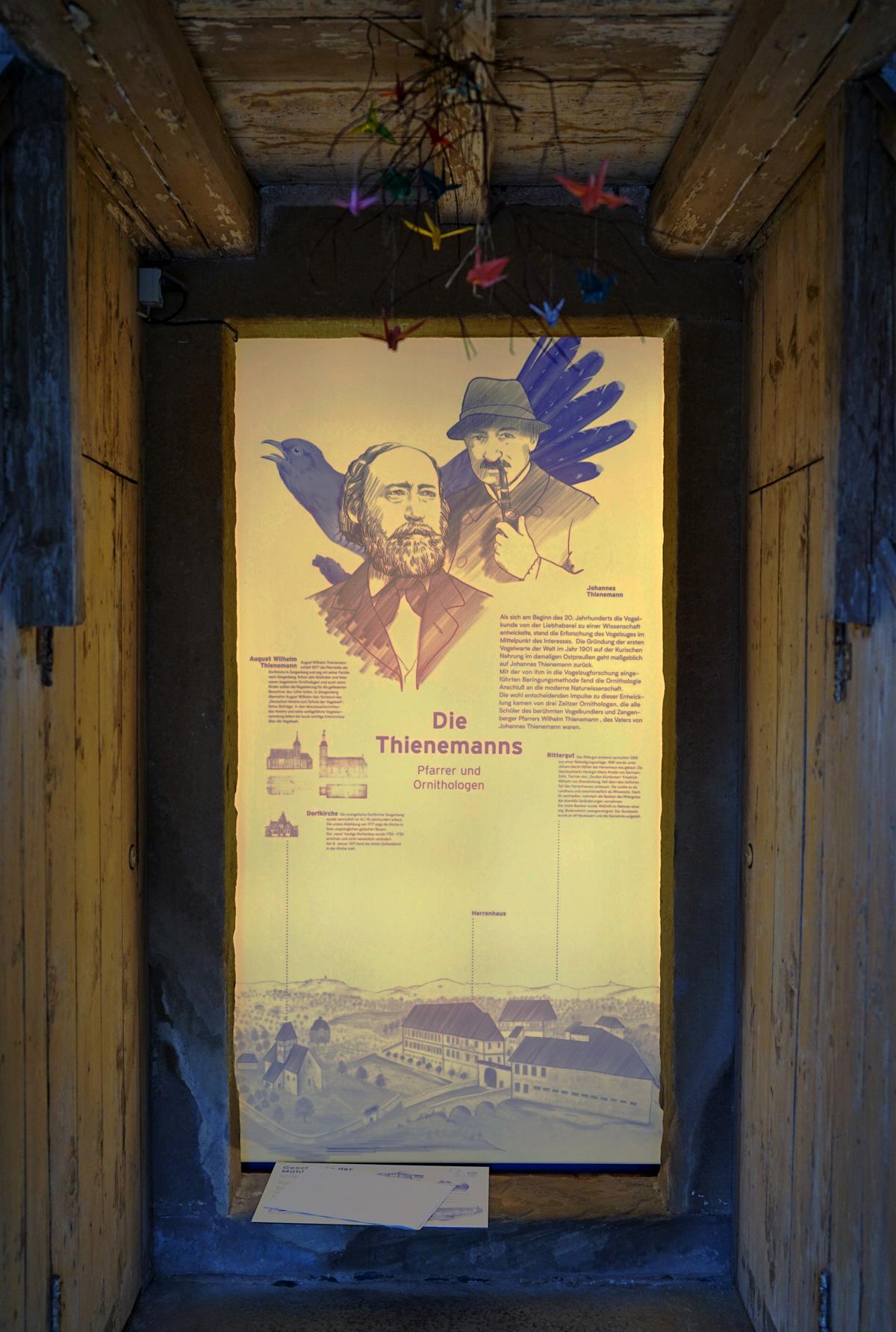 Der Ort, die Ausstellung, das Projekt sind auch eine Reminiszenz an Professor Dr. Johannes Thienemann. Der Ornithologe lebte einst hier nahe der Umweltkirche Zangenberg im Pfarrhaus.