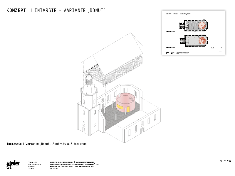 Wenn man so will starten mit dieser Ausstellung heute gleich drei Projekte: die Ausstellung selbst, oben erwähnter Umweltpfad und die Umweltkirche Zangenberg. Letztere, als Kirche längst entweiht und seit Jahrzehnten ungenutzt, bildet den eigentlichen Kern der Aktivitäten der LPV-Protagonisten in Zangenberg. Momentan Herberge einiger Vorgelarten und nun dieser Ausstellung soll diese Kirche langfristig gesichert werden, am besten durch sinnvolle wie wirtschaftliche Nutzung. Die solle etwas mit Umweltbildung zu tun haben und die Kirche als Teil einer touristischen Infrastruktur überregional wahrgenommen werden. So die Grundidee. Welche Möglichkeiten es dabei und darüber hinaus geben könnte, welche Visionen für die alte Kirche bestehen, das präsentierte nach der Eröffnung das Architekturbüro Schellenberg-Thaut im Pfarrhaus der Gemeinde. Das Büro war vom LPV Zeitz mit der Erstellung einer Machbarkeitsstudie beauftragt.