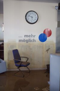 schreibt Holger Baumgarten, Gründer und Geschäftsführer der Firma. Die Flut hatte das Büro komplett überflutet, die gesamte IT-Technik und den Fuhrpark unbrauchbar gemacht. Der Schaden ein hoher sechsstelliger Betrag, die Arbeitsplätze weggespült. Das waren Eindrücke und Anblicke für das Team, die den Leitspruch „… mehr möglich“ überdenken ließen. “ … wieder möglich“ wäre eine passende neue Definition. Denn so unüberwindbar die Herausforderungen schienen, „Inmitten des Chaos und der Verzweiflung zeigte sich der wahre Charakter unseres Teams. Die Solidarität und der Zusammenhalt, den wir während dieser schweren Zeiten erlebten, waren unbeschreiblich. Kollegen halfen einander, freiwillige Helferinnen und Helfer standen uns zur Seite, auch die lokale Gemeinschaft unterstützte uns mit ihrer Ermutigung„, schreibt Holger Baumgarten.