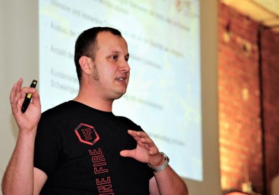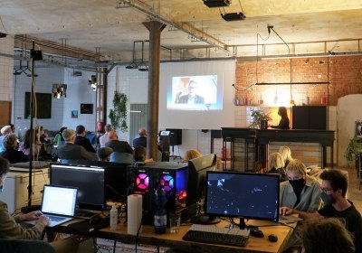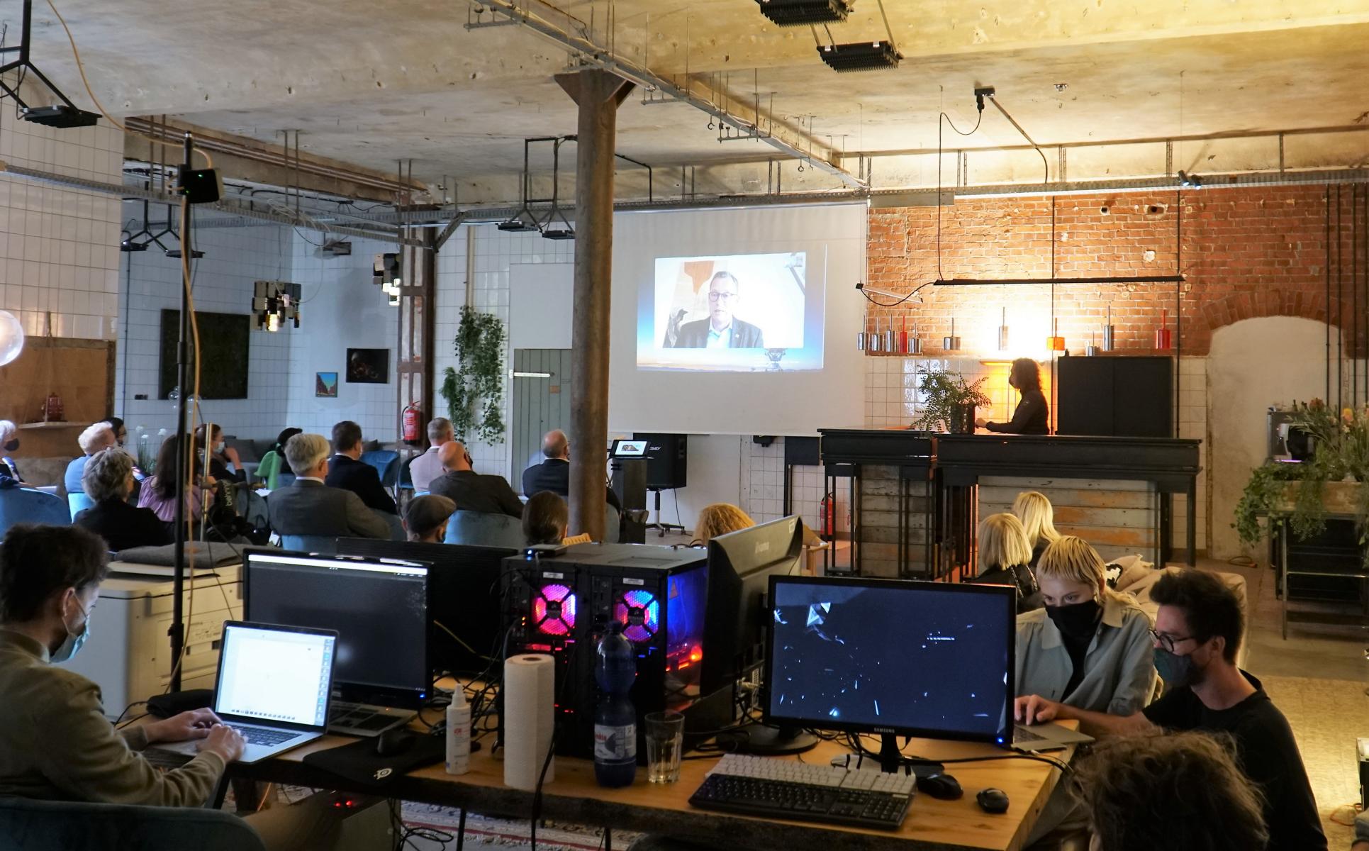 So formuliert Mathias Mahnke (Bild re.) eines seiner Ziele. Die Nudel als ein „‚Ökosystem‘ für Virtual Reality, Kunst und Kultur“, wie Mahnke diesen Ort in seinem Vortrag beschreibt. Seit er hier Hand anlegt, geben sich KünstlerInnen verschiedener Genres hier die Klinke in die Hand, wird dieser Ort zum Mekka für Kunst- und VR-Interessierte, bei MacherInnen wie bei „Verbrauchern“. In der Nudel werde deshalb die komplette Infrastruktur entwickelt, die junge innovative Unternehmen, Kunst- und Kulturschaffende brauchen, vom Arbeitsplatz bis zum temporären Wohnangebot. Dabei sieht der Unternehmer in zunächst niedrigschwelligen Angeboten die besten Entwicklungschancen. Er habe dabei keinen konkreten Plan im klassischen Sinn, es gehe vielmehr darum, auf Nachfrage zu reagieren, Projekte und Menschen so zusammen zu bringen, dass Synergien entstehen, woraus denn nächste Schritte abgeleitet werden. Das, gepaart mit „Wir wollen Begeisterung erzeugen“, scheint aufzugehen. Wer mit offenen Augen und Ohren die Entwicklung der „Nudel“ verfolgt, der kann es sehen und spüren.