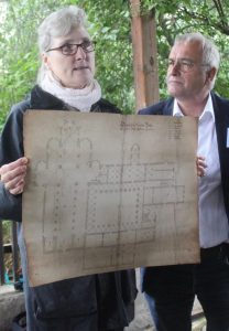 „Von immenser Bedeutung ist dabei ein erst vor wenigen Jahren aufgefundener Plan des Klosters aus dem Jahre 1659 … In diesem Plan finden sich genau die Details, die den aufgefundenen Fundamentblock eindeutig identifizieren.“