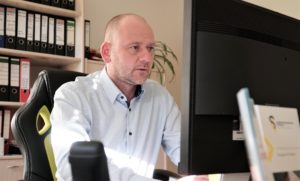 Auch wenn der Dreipunkt-Sicherheitsgurt fehlt, der Stuhl am Arbeitsplatz von Steffen Schmalz gleicht auf den ersten Blick der Fahrerlehne eines Sportwagensitzes. Dabei wäre der LKW-Sitz noch passender. Denn hier liegt seit Mai 2016 eine wesentliche Kompetenz des Fahrlehrers. Damals erhielt er die so genannte AZAV-Zertifizierung als Weiterbildungsträger. „Akkreditierungs- und Zulassungsverordnung Arbeitsförderung“ verbirgt sich etwas sperrig dahinter.