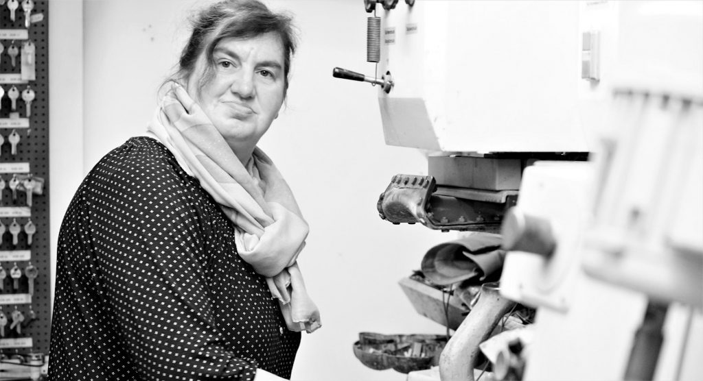 Den klassischen Schuster, den gibt es in Zeitz nicht mehr. Außer im Multi-Express hier in Zeitz-Ost bei Frau Lämmchen. Dafür, dass es den Service gibt kommt sie jeden Tag aus Meuselwitz herüber nach Zeitz. Noch immer ist sie mit derselben Leidenschaft und Freude an der Arbeit hier wie am ersten Tag. Das spürt man.