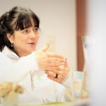 Wir sind gespannt, ob Ines Pieser zur diesjährigen Michaelverleihung wieder im Selbstgeschneiderten kommt. Im letzten Jahr war das ein Dirndl. In ihrer Nähwerkstatt in Rehmsdorf macht sie das am liebsten: allein und ganz in Ruhe neue Modelle überlegen, Stoffe zuschneiden und daraus wahre Schmuckstücke machen. Gerade zeigt sie uns stolz ihre kostbaren Stoffe aus Kork. Daraus zaubert Ines Pieser Handtaschen, aber auch Kleidungsstücke. Die Geschmeidigkeit der verschiedenen Korkstoffarten überrascht uns ebenso, wie die Formen, welche sie erfindet – ästhetisch mit hohem Gebrauchswert.